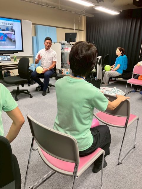 ボールでは力をいれすぎるため、風船がちょうどよい強度となるそうです。